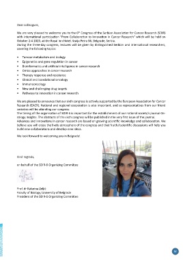 We are very pleased to welcome you to the 6 Congress of the Serbian Associa on for Cancer Research (SDIR)